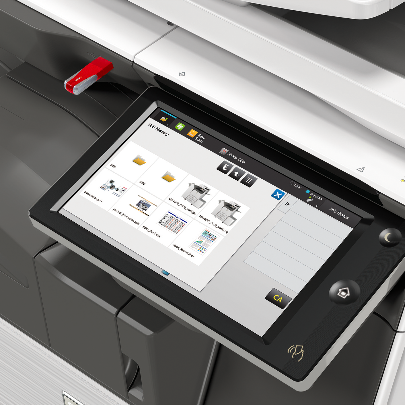 Onze multifunctionals kunnen printen, kopiëren, scannen, nieten en perforeren met diverse soorten papier.
